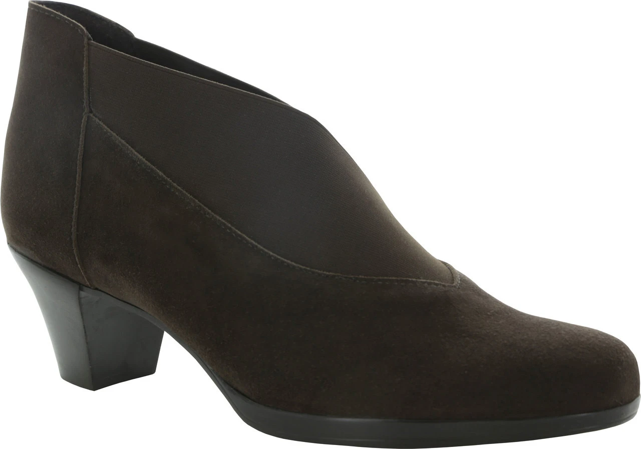 Englin’s Fine Footwear presents the women’s ‘Francee’ from Munro. Beautiful suede bootie with wide gore, envelope fold, V-neck topline. Your legs will appear longer with the cut of this lovely bootie. An easy on and easy off, comfortable and this bootie will pair well with your fall wardrobe.Â