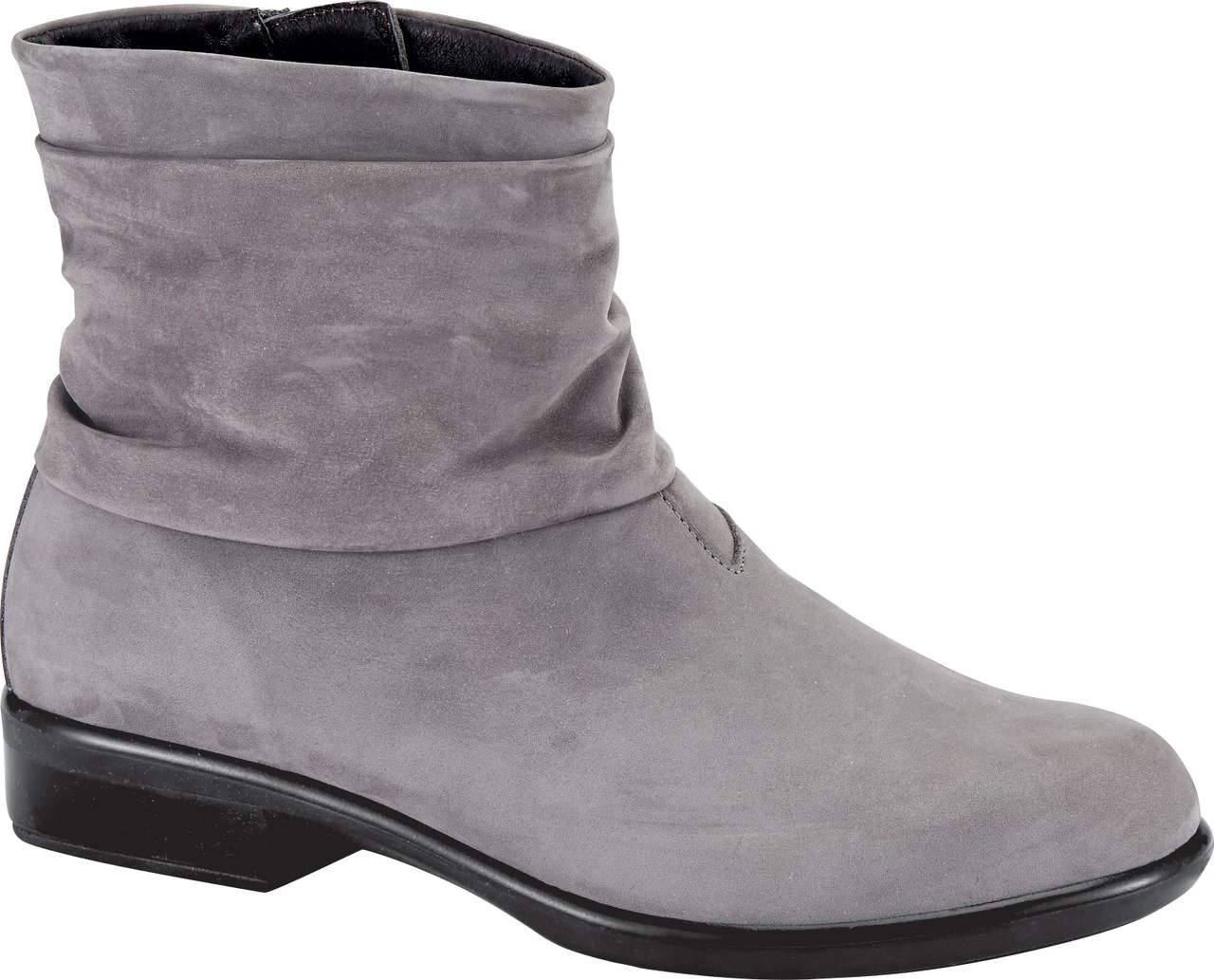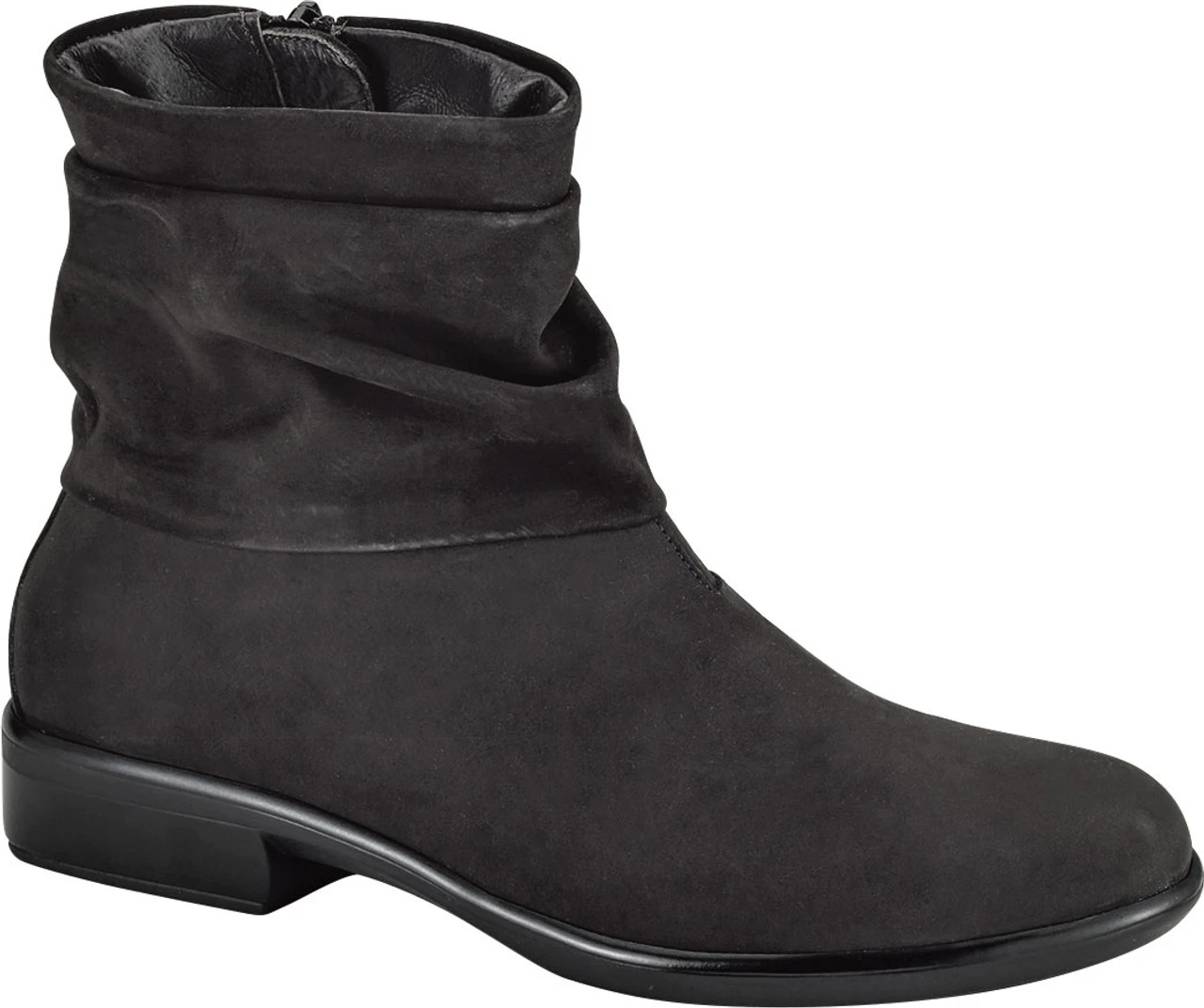 Englin’s Fine Footwear presents the women’s ‘Brisote’ from Naot. Combining cute folds with smooth, neutral nubuck, the Brisote is a boot that packs timeless fall fashion. Its look is only enhanced from within by Naot’s removable, anatomic cork & latex footbed, which is wrapped in microfiber & leather and molds to the shape of the foot with wear. The Aura Collection features a 1.5″ polyurethane sole with a metal shank which is extremely lightweight, durable & abrasive to prevent slipping. This collection uses a hand-sewn stroble construction making it strong and extremely flexible.