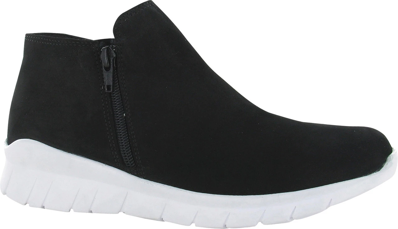 Englin’s Fine Footwear presents the women’s ‘Zodiac’ from Naot. The Zodiac showcases classic shades of smooth nubuck with an eye catching white, slip resistant sole. A cork & latex removable footbed provides all-day comfort. This style contains double zippers for easy on/off and also features padded technical lining for extra comfort. The Zodiac fits our Aura Footbed.