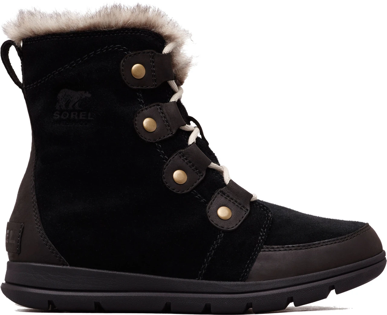 - Upper: Waterproof full-grain leather and suede combination with faux fur collar. Waterproof breathable membrane construction. Microfleece lining.